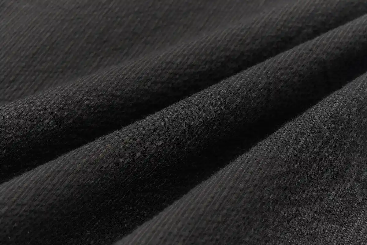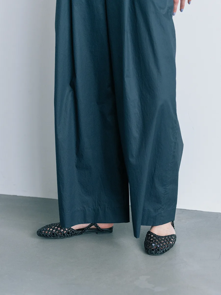 浅川 コットンなんですが、 光沢が出るような加工を入れていて、 ちょっとナイロンっぽいというか、 動くとシャカシャカと音がするような、 スポーティな感じがあります。 シワもそこまで気にせずに 穿いていただけると思います。