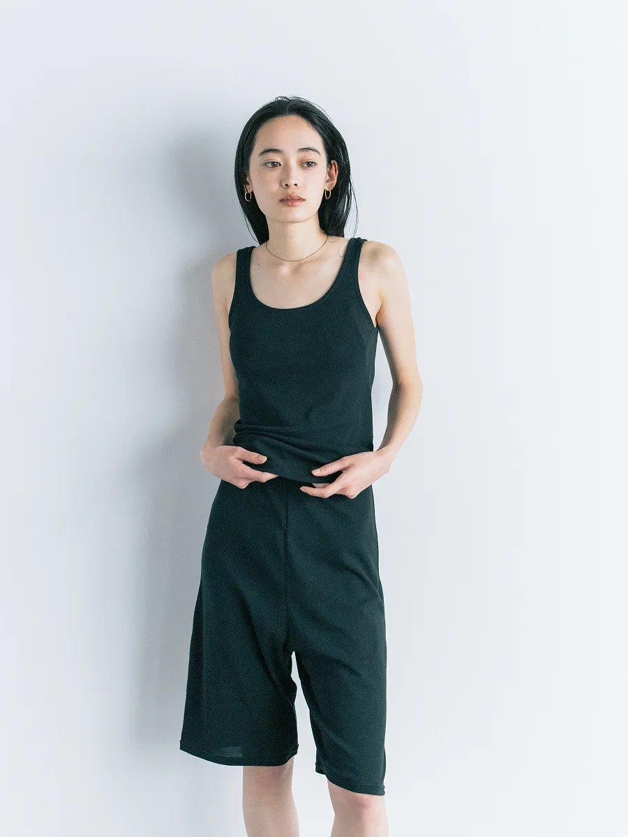 岩木 フレンチスリーブよりちょっと長めで、 3分袖よりはちょっと短め。 このさじ加減が絶妙です。 ほかに変更したところは襟ぐりのしまつですね。 タンクトップもおなじ仕様ですが、 上に何か着たときにインナーの線が浮き出てこないように バインダーしまつを裏側に。 見た目もすっきりしました。