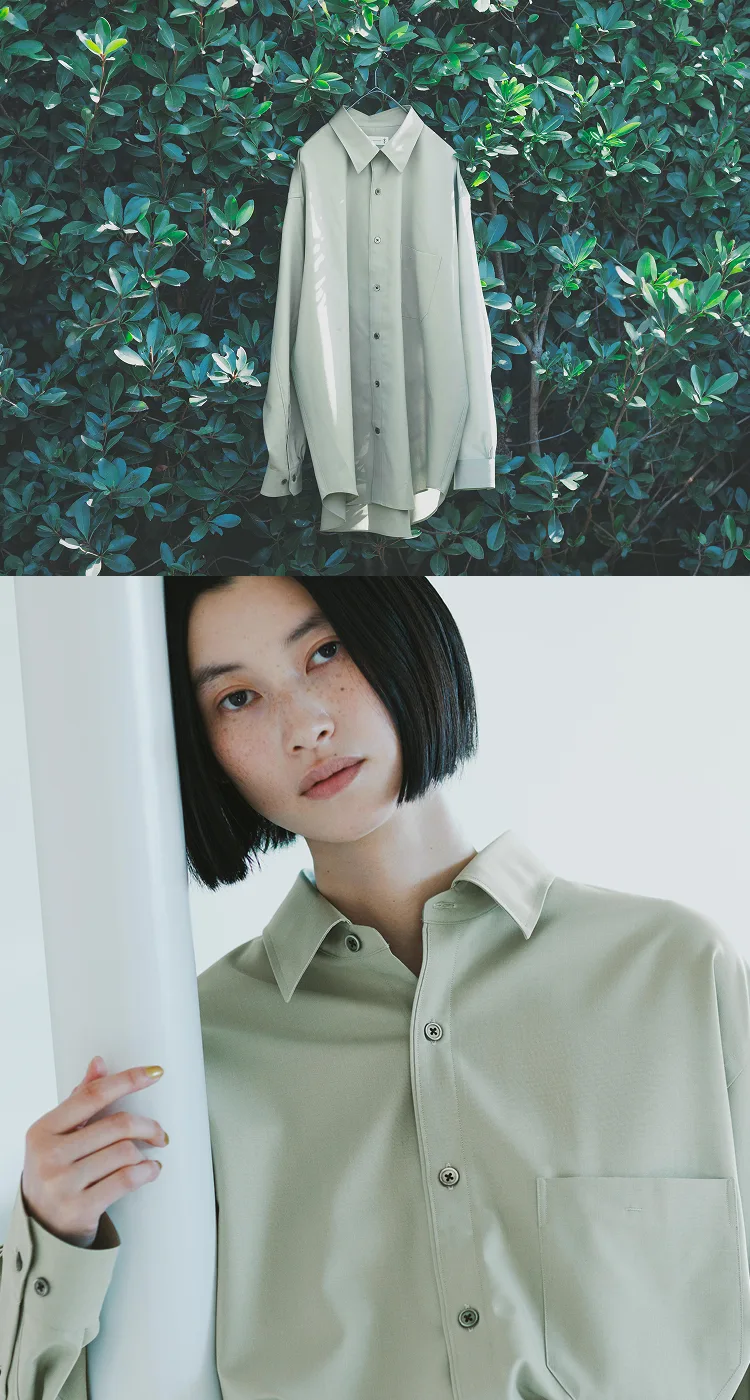 - Nikki ESSENTIAL PIECES × HITOYOSHI ×〈O2〉 テーラードメリノシャツ(セージ・2)