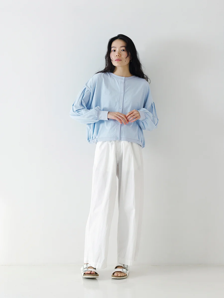 3色それぞれのコーディネートも 宇和川さんに組んでいただきましたので、 着こなしのヒントとあわせて、 サマーパフカーディガンの着心地のよさをご紹介します。