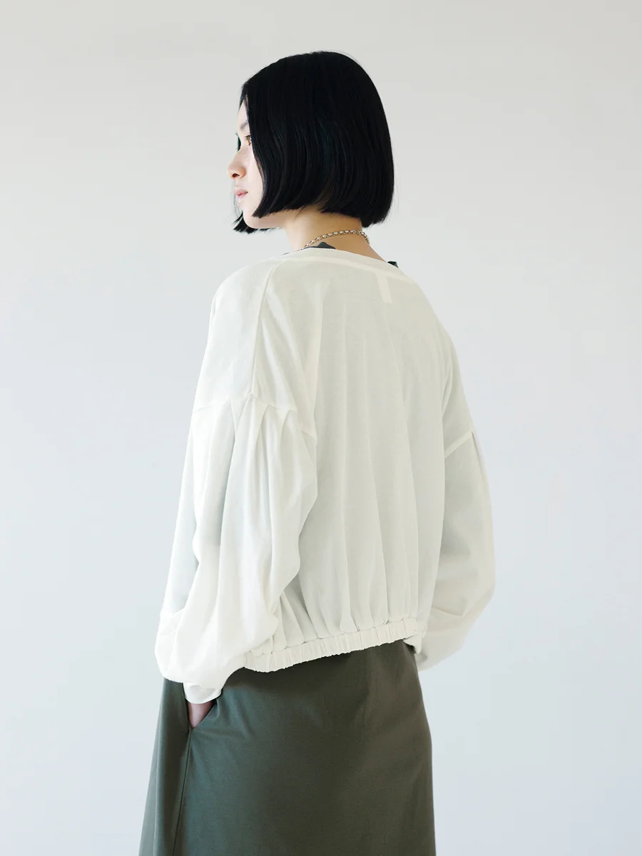 ─ 「サマーパフカーディガン」という名前のとおり、 シルエットもけっこう立体的ですね。 ふわっとしているのは、 やっぱり夏に涼しく着られるように?