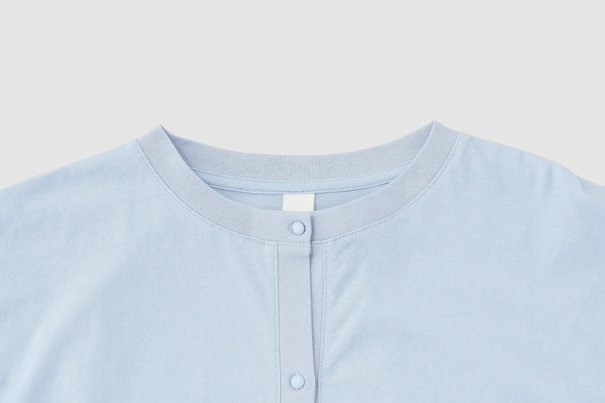 宇和川 はい。 袖口と裾、襟と前立てはリブ素材にしています。 伸縮性を考えてのことだったのですが、 極薄のリブにさせてもらったじゃないですか。 そうしたら想定外に透け感がでて、 結果的に正解だったなあと思っています。