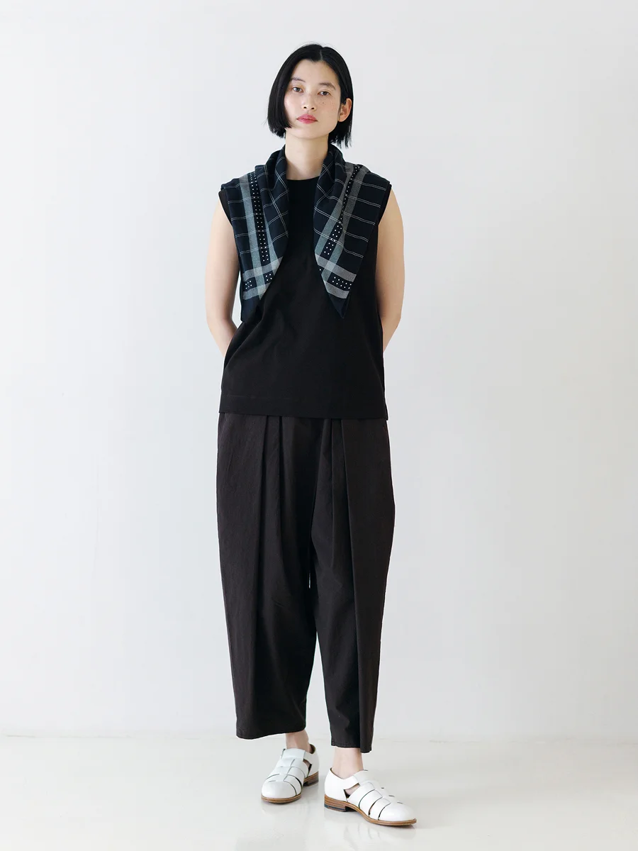 2023年、2025年の2度、 「生活のたのしみ展」でもご紹介させていただき、 立体裁断のパターン技術を活かしたボトムスは、 体型を美しく見せながら 気になる部分もさりげなくカバーしてくれると、 大変ご好評をいただきました。