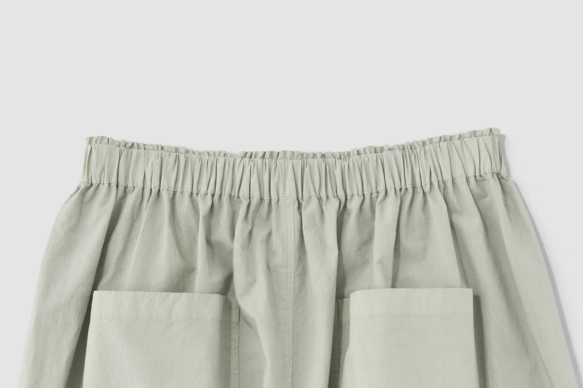 仁美 そうですね。 股上は深いですが、 足さばきはいいように設計しています。 自転車もラクに漕げますよ。 あと、実はお腹まわりの内側に、 小さな穴を開けているんです。 そこに少し遊びが生まれることで、 体格のいい方が履いたときにも 変に突っ張ったシワが出にくくなっています。