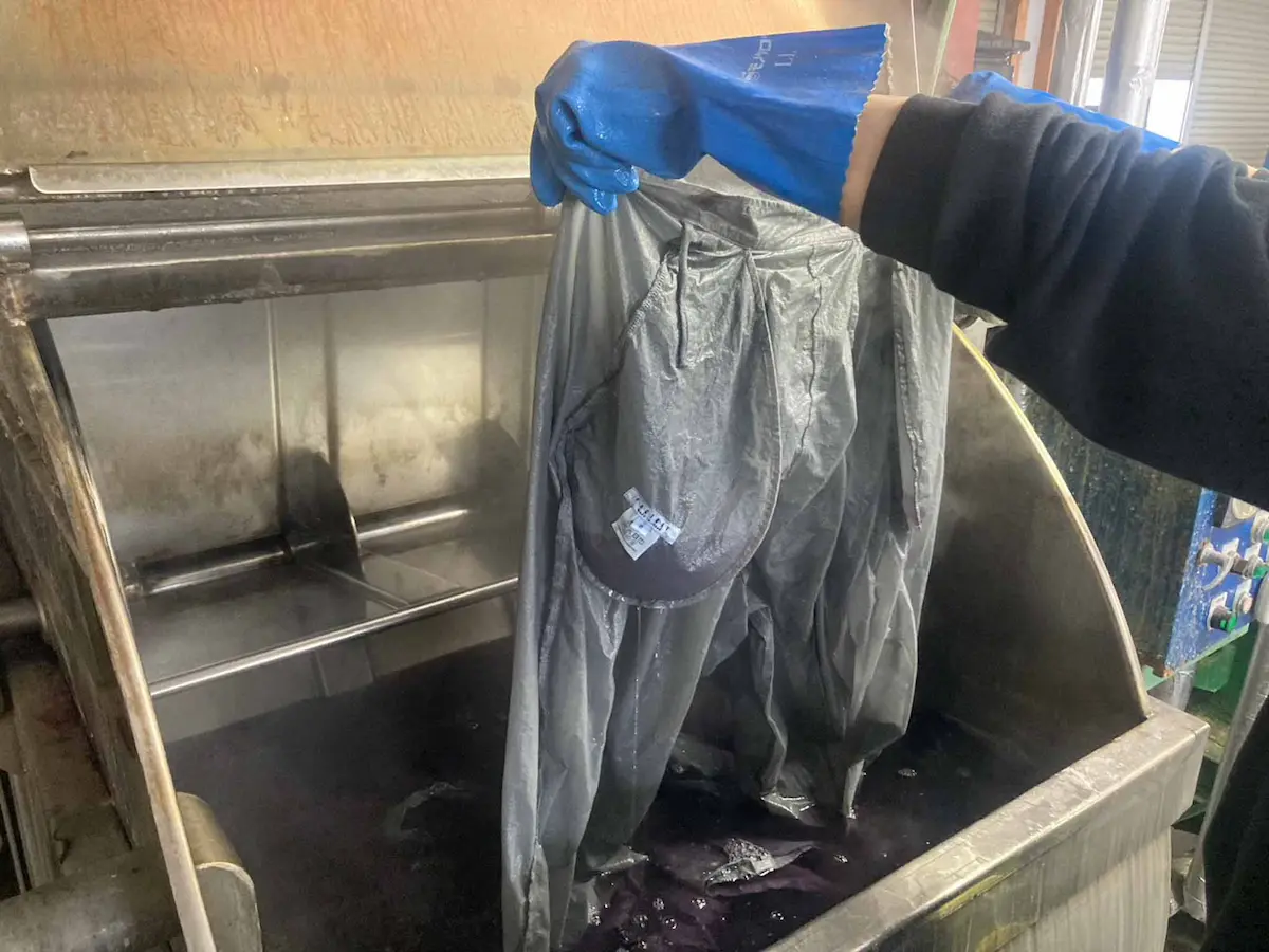─ 土台となる縫製の精度が問われるんですね。 実際、製品染めはどのように行われているんですか?