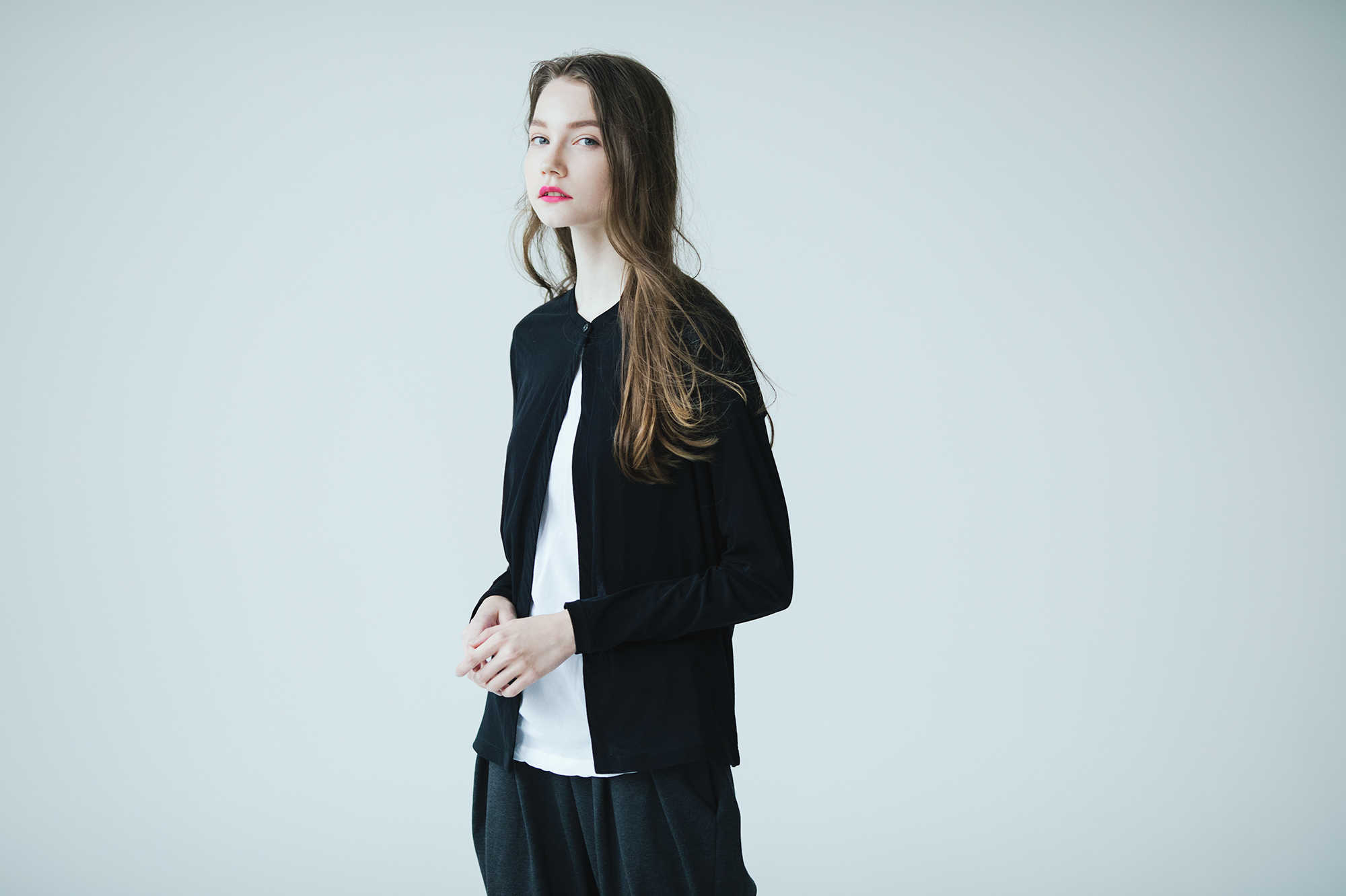気がるに羽織れるよう、ボタンは襟もとに1つだけ。