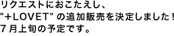 "+LOVET"の人気ぶりは、その自信以上でした。