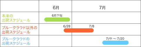 ■「ブルークラウド」の出荷遅延について