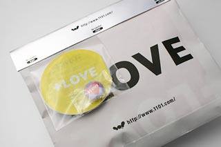 特製"+LOVE"パッケージのシルバーのヘッダ部分は、