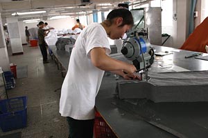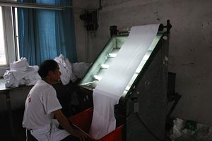 国内の染め工場で、染色したときの縮み率を調べるため、