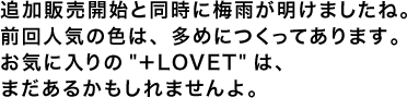 昨日から始まった"+LOVET"の追加販売ですが、