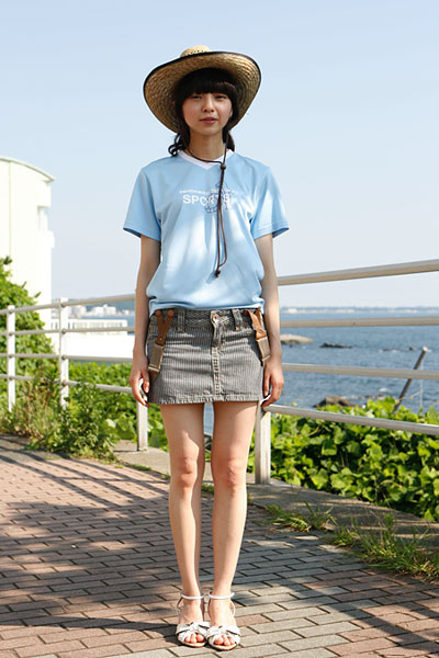8月のラインナップのなかでは、 合わせる洋服によって いろいろと着こなせるシャツだと思います。 今回はヒッコリーのスカートを合わせて さわやかな着こなしにしてみました。 首もとのVネック仕様と ドライ素材の光沢感のおかげで きれいめな着こなしにも持って行けそう。 ネイビーのスカートや 色落ちしてないデニムであれば トラッドっぽくも、着ることができそうです。 男性でしたら、タイトなグレーのパンツとか、 かっちりしたものでもOKでしょう。 イルカさんのモチーフなので 海パンみたいなショートパンツでも、いいかも。 とにかく、さわやかにも、スポーティにも、 トラッドにも落とし込める、 そんな便利なシャツだと思います。 (スタイリスト・古賀雅依子)