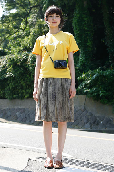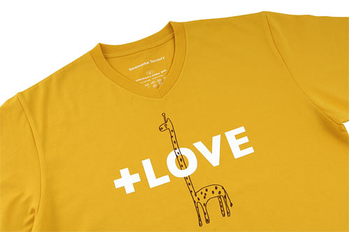 この山吹色みたいなイエロー、 ちょっと派手かな〜なんて思っていませんか? いえいえ、これからの季節だったら、大アリです。 しかも、Vネックですから 丸首のシャツよりも、女性らしく着れるはず。 ふだん、Tシャツには抵抗あるかたも カットソーの感覚で、 この鮮やかなイエローを楽しめそうです。 Vネックのシャツって ふつうのTシャツよりも大人っぽいから 落ち着いた男性でしたら タイトなパンツなどに合わせてみては? きっと、うまく着こなせると思います。 カジュアルなデニムなんかに合わせて 若々しく元気に着ることもだって、 とうぜん、できます。 それよりなにより、このキリンがかわいい!(笑) 子どもたちに受けそうですから、 お母さんや、保母さんなんか、 いいかもしれませんね。 (スタイリスト・古賀雅依子)
