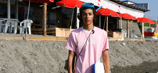 今回は、海で遊んじゃうときの スタイルを提案してみました。 男っぽい、ワイルドな印象のかたでも こうしたピンクを着ると、 やさしい感じが出てきますし、 なにより、男性がこうした 甘めのピンクを着ていると それだけでおしゃれなんだろうなーと 思ってしまいますよね。 もちろん、女性には、なんなく合う色。 アクセサリーなんかをプラスしてもかわいいし、 スポーツ以外の場面でも、 街で着るおしゃれ着として ふつうに成立してしまうでしょう。 ビート板を持ったブタさんが 一生懸命ダイエットしてるみたいで、 わたし的には、 いちばん「キュン!」ときちゃいました(笑)。 (スタイリスト・古賀雅依子)