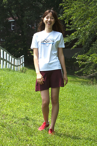 胸のロゴも大きくて元気だし、 なかでもはつらつとした印象なので、 外で遊ぶときやスポーツ観戦などに 着ていきたくなるようなシャツですね。 せっかくのスポーツテイストを じゅうぶん活かすには やはりスポーツっぽい格好が、おすすめ。 ラインのはいったスウェットや プリーツのはいったミニスカートなど このところ人気のスポーティなアイテムには、 「ズバリ!」なはずです。 定番の白いロゴTですから、 カジュアルスタイルに合わせても もちろんOKです。 年齢や性別、スタイルを問わず どんな人でも着られるところが、便利ですよね。 (スタイリスト・古賀雅依子)