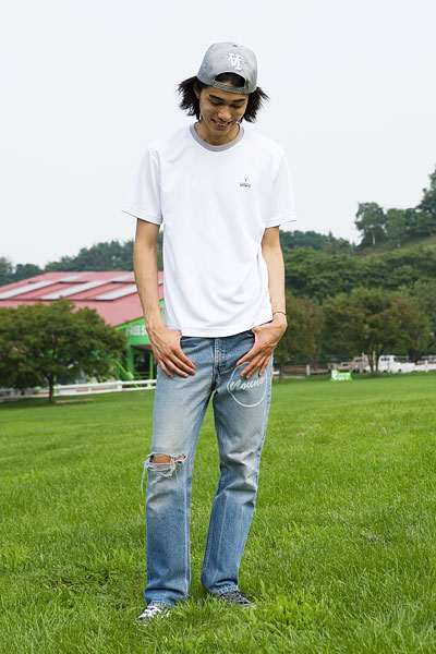 なかでも、さわやかでスポーティ。 着ると自然に、 身体を動かしたくなってしまいそうです。 ジムやクラブのときのために おしゃれなスポーツウェアを探しているなら まずは一枚、おさえておきたいシャツでしょう。 カジュアルなスタイルに合わせるなら、 トリム部分のグレーを アクセントとしてうまく活かしたいところ。 キャップやシューズの色をグレーに合わせたら、 おしゃれ度が、いっそうアップしそうです。 上からジャケットなどを羽織ってもいいかも。 上着のあいだから さりげなくシャツの光沢をチラ見せしたりしたら きっとおしゃれですよね。 (スタイリスト・古賀雅依子)