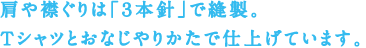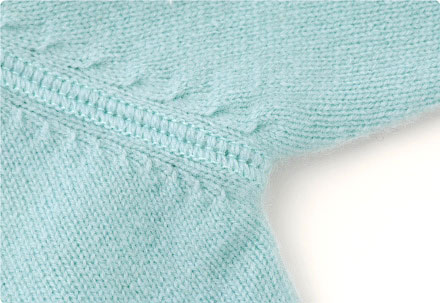 襟まわりや肩、ボディとそでのつなぎめの部分は、