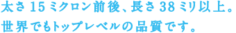 「太さ15ミクロン前後、長さ38ミリ以上」という