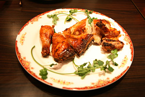 特製のソースでマリネした鶏をオーブンで焼きます。