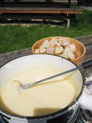 溶けたチーズにパンだけをからめて食べるだけです。