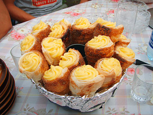 コロネ型にカスタードクリームをたっぷりと詰めた