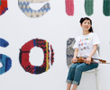 ヴィンテージニットでできた文字をならべて、