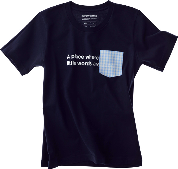 ロゴTの上から、 ギンガムチェック柄のポケットをはりつけた、 というイメージの、かわいいデザインです。 ちゃんと、いちどメッセージをプリントして、 その上からポケット部分をプリントしています。