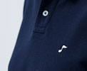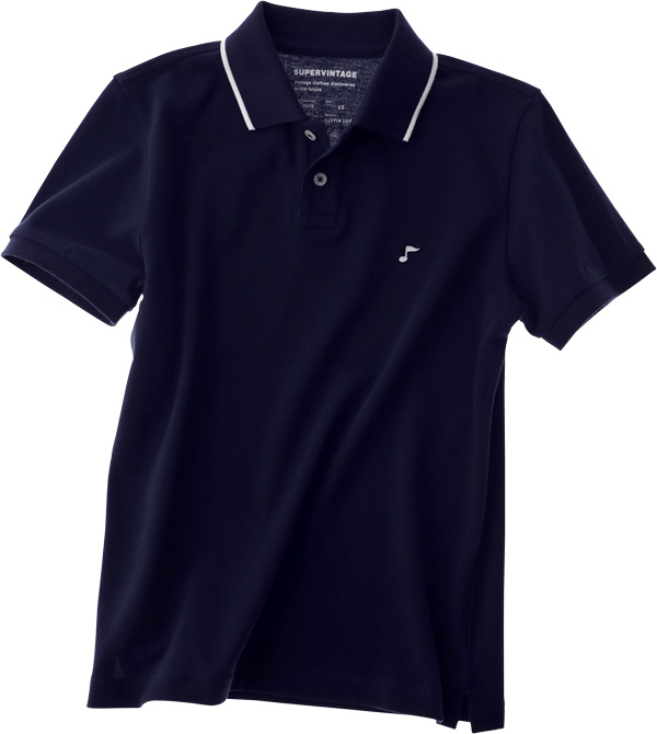 旗みたいなかたちをした胸の音符のマークに、 衿の白いライン。 シンプルなデザインのポロシャツです。 音符を胸に、うき立つ気分で出かけてくださいね。