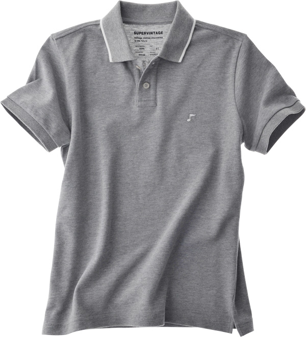 18「おんぷのポロ(紺)」と同じ、 胸に音符のマークがついたポロシャツ。 こちらは、グレーボディです。 これからの季節にうれしい色合いを、 ぞんぶんにおたしのみください。