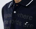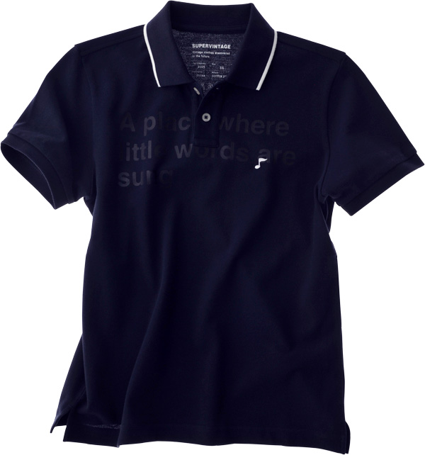 18「おんぷのポロ(紺)」の胸に、 黒でメッセージをプリントしました。 結果は‥‥? いままで見たことのない、 かっこいいポロシャツができあがりました!