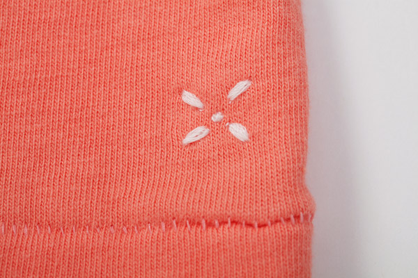 花を模した〈はじまり〉の刺しゅうです。