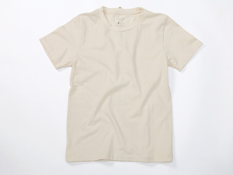 まったく色を染めていない、 生成りの「吊り編み天竺」生地を使用しています。 糸を染めていないぶん、吊り編み生地本来の やわらかさ、弾力性をおたのしみいただけます。 〈CLASSIC〉の肌ざわりを、より堪能したい方のために。 ※「ナチュラル」色は〈CLASSIC〉素材のみとなります。
