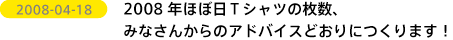さっき、Tシャツ届きました。もう着てまーす。 いいです!! 去年のより首まわりが少しゆったり、という点に 期待してました。 去年、あともーちょっと、 首まわりにゆとりがあるといいな、と思ってましたので。 この首まわり、いいです。ラクです。