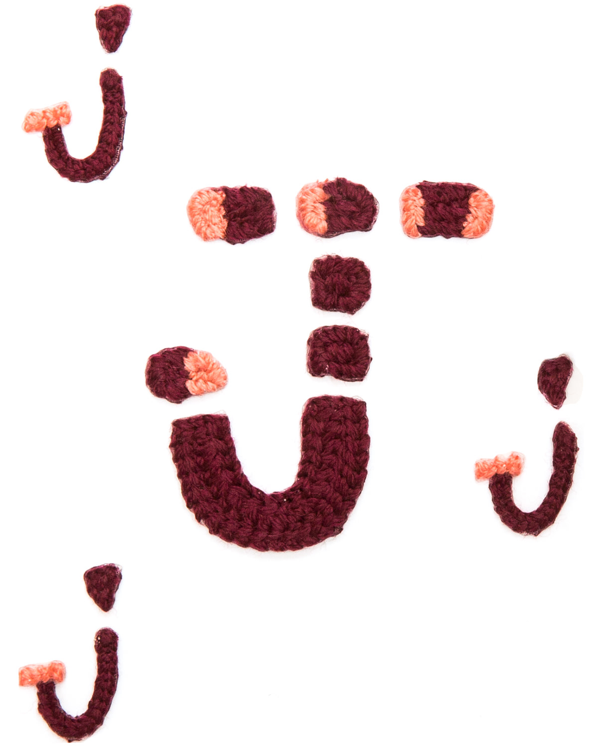 かぎ針で編んだ「J」を、ワッペンにしました。