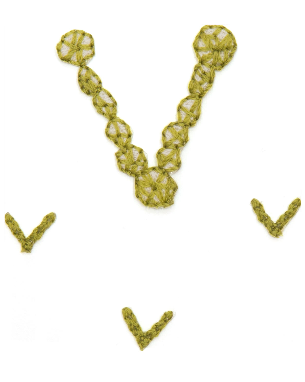 丸い刺しゅうのつらなりで「V」のワッペンに。