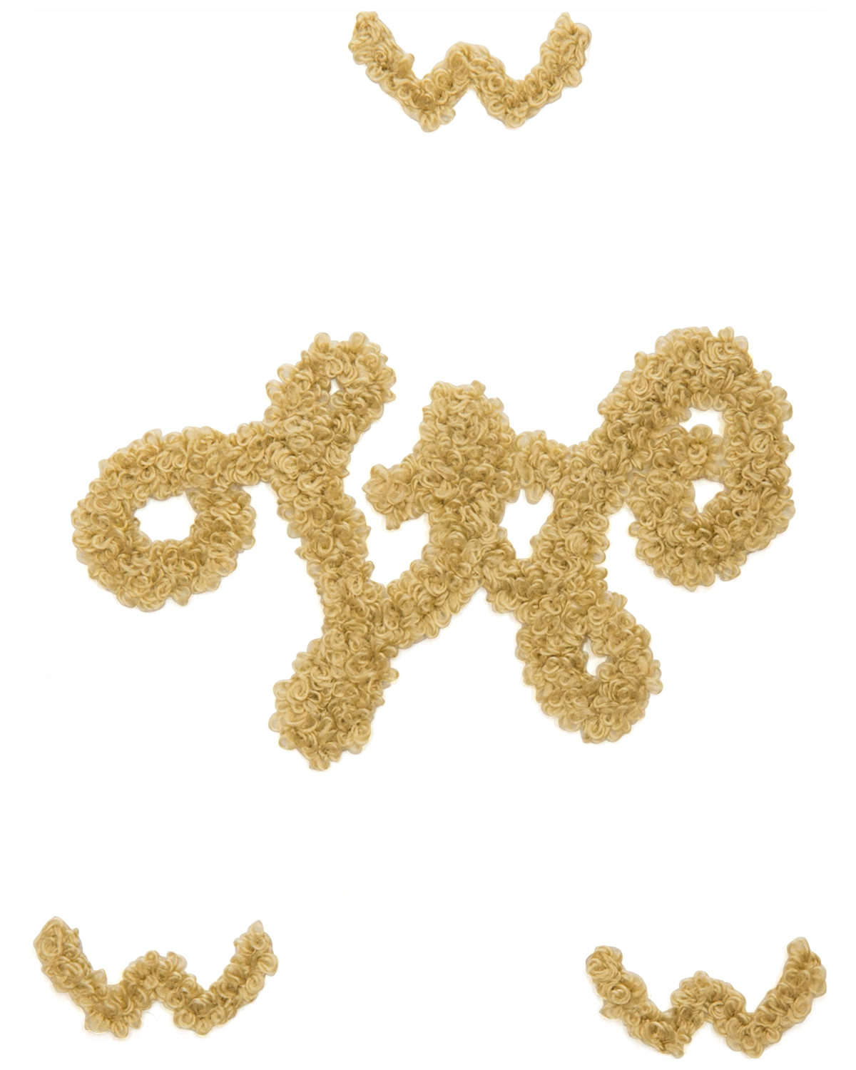 今回いちばんボリュームのある「W」のワッペンです。 大文字の方は、単体で貼っていると アルファベットだとは思われないデザインかも。 その大胆さが魅力の、もこもこタイプです。 小文字は逆さにすれば「M」に。