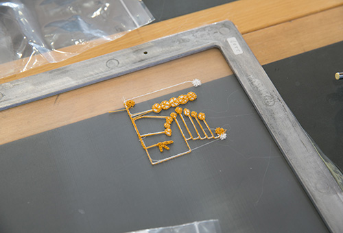 | 大原 | ひと針、ひと針、ドットにして打ち込んでいました。 たいへんな作業です。 |