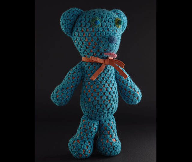いわば「重ね着」をしたクマのあみぐるみ。