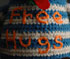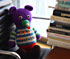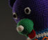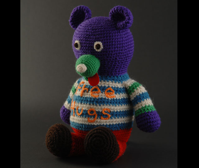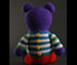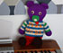 ボディに文字の縫い込まれた、クマのあみぐるみ。