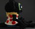 「書斎の本棚に腰掛かけ、机に向かう研究者を