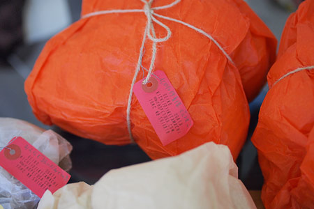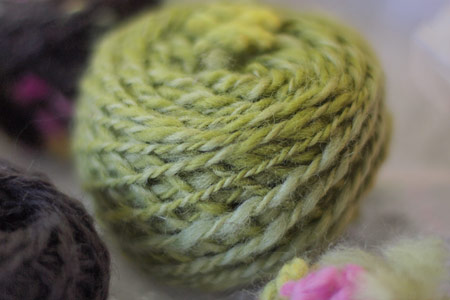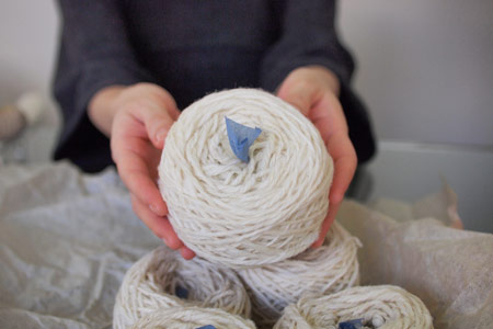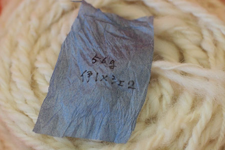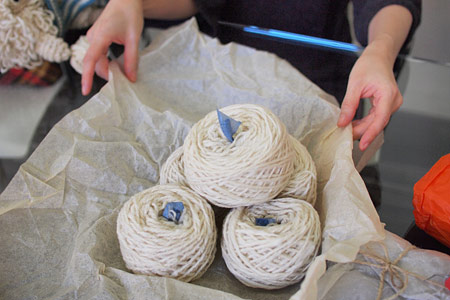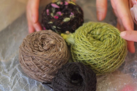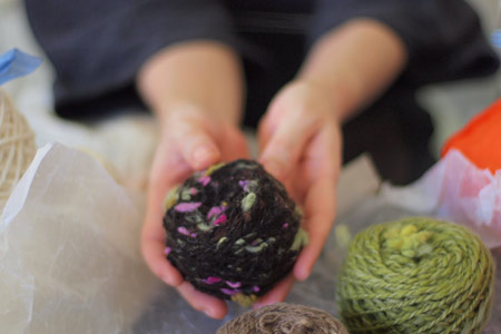 わたしがつむいだ糸をまぜてつくったんですよ。