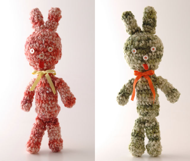 ざっくりと編まれた、野うさぎのあみぐるみで、