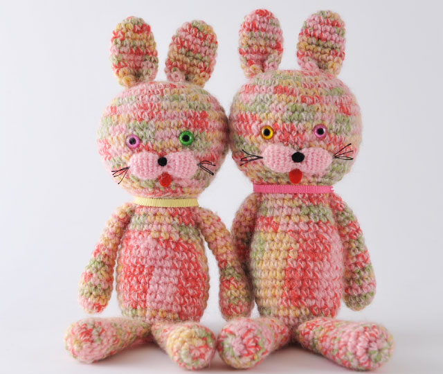 マーブル状にたくさんの色が混じった毛糸で編まれた、