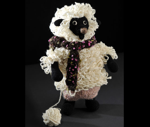 顔と手が黒いひつじのあみぐるみをつくりました。