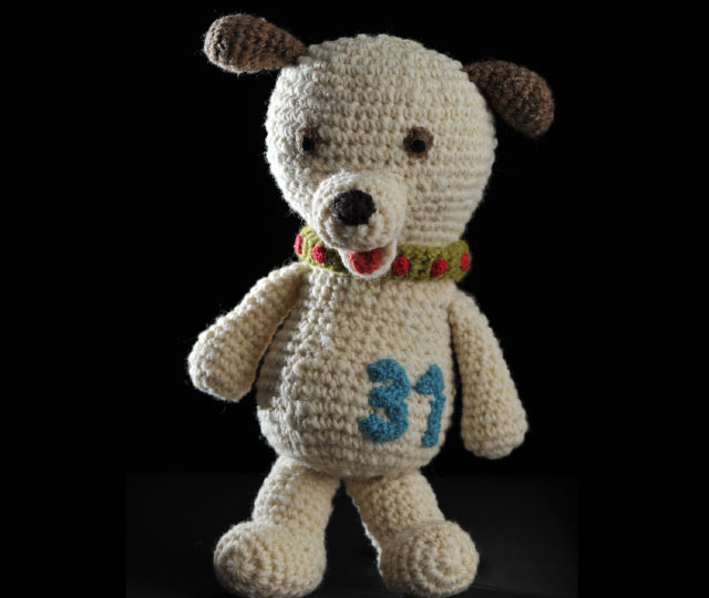 耳や目の茶色い部分も、緒方さんの手つむぎ毛糸。