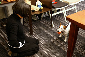 ひとしきりボール遊びをしたあと、対談がはじまりました。)