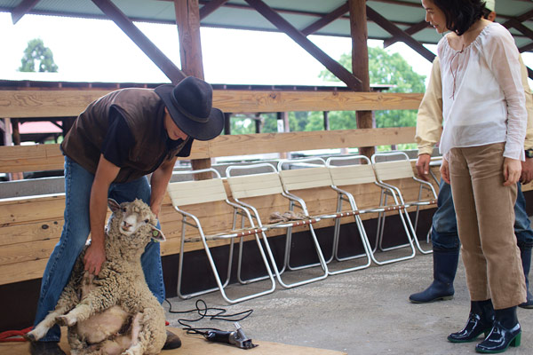 ひつじを両足でしっかりはさみ‥‥。
