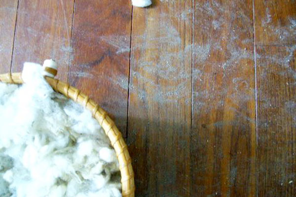洗ったはずの羊毛からこんなに土埃が‥‥。