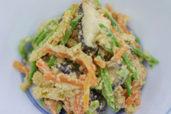 「山本さん、三宮さんのにくらべると、 ちょっと上級者むけかもしれませんね〜。 「有りがたし」の酒粕は、 通常の酒粕に比べると、酸味が少なく、味も淡白ですが、 うまみは十分。 くせがないぶん、料理に使いやすいし、 少量加えるだけで味に深みが増すように思います。 味つけに、ごまや牛乳、豆乳などを使うのがおすすめ。」 ■野菜の酒粕あえ ![]() 用意するもの(2人分)