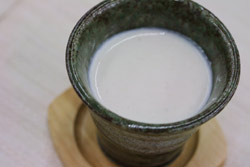 1 しいたけは軸をとる。 2 酒粕ペーストを作る。 酒粕は耐熱容器に入れ、 ラップをせずに電子レンジで5〜10秒加熱して やわらかくし、酒を加えてなめらかにねり混ぜる。 しょうゆを加えてまんべんなく混ぜる。 3 しいたけに酒粕ペーストを1/4量ずつ詰め、 グリルでこんがりと焼く。 ※ゆでたけのこに塗って焼いてもおいしい。 ■牛乳甘酒 ![]() 用意するもの(一人分)